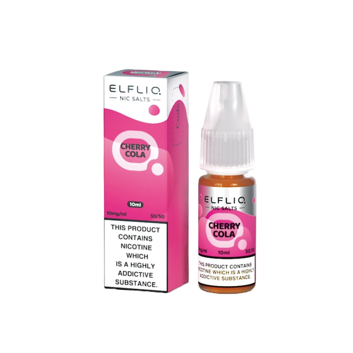 - Eine Flasche Elfliq Cherry Cola Nikotinsalz-Liquid mit einem Inhalt von 10 ml.